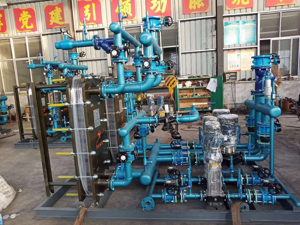 我公司生產的機組由板式換熱器、循環水泵、補水泵、除污器、配電箱(柜)及各種儀表、管件、閥門等附件組成。用戶只需要連接一次熱源、 二次水(采暖供熱或生活用水)系統及補水系統,接通電源,即可使用。它具有安裝簡便快捷、占地面積小、運行可靠、檢修保養方便等優點,是一種高效節能設備。